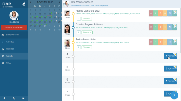 Agenda personal del doctor, buscar cita más próxima , excepciones, crear citas periódicas, aviso por correo electrónico a paciente y más